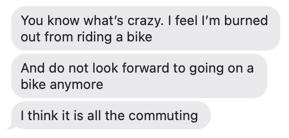 [2] Actually I started out with a Boosted board but switched to a bike after its battery randomly just stopped working on me one day only a few weeks after I had gotten it.