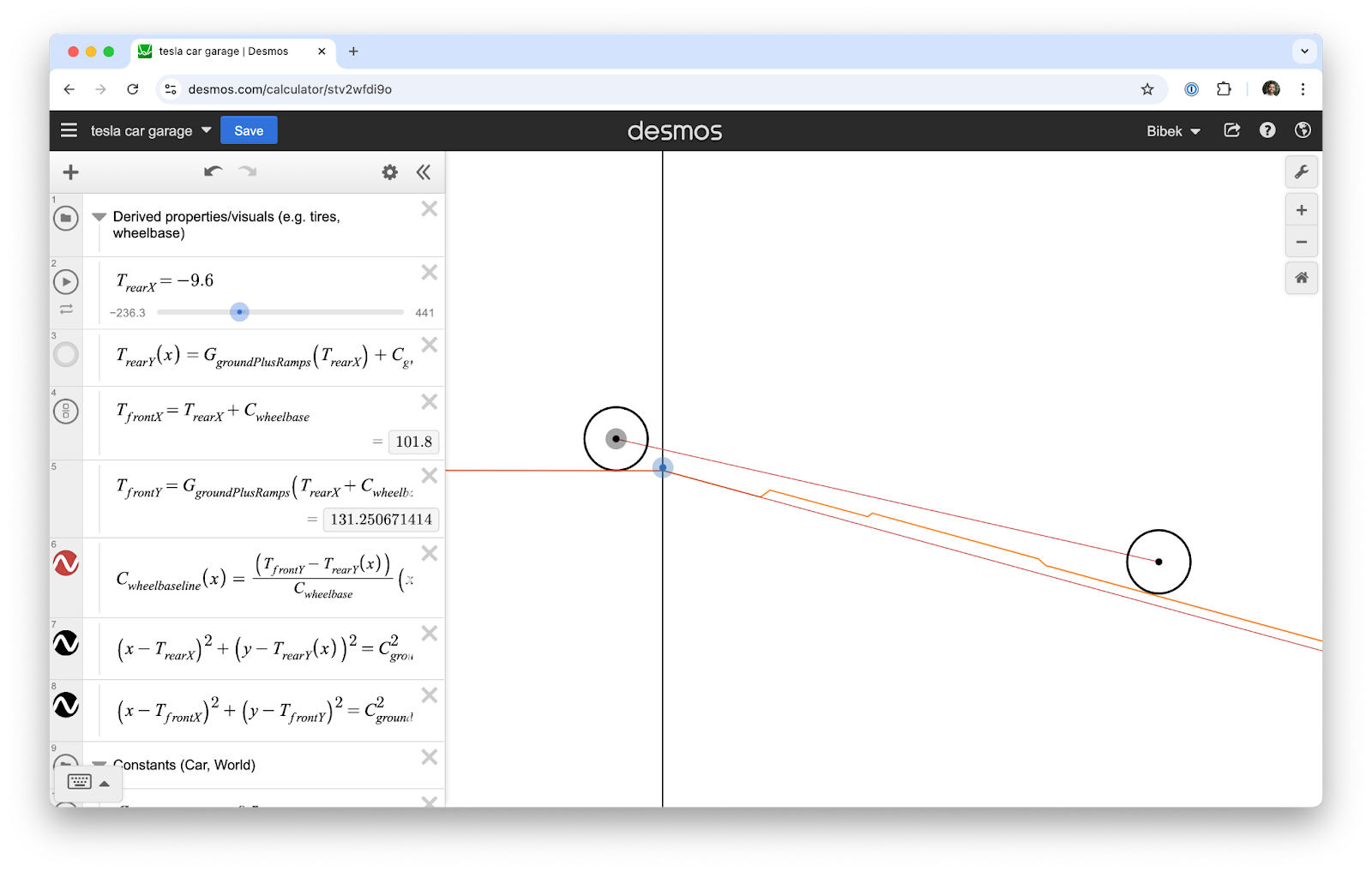 So over the next six months, I spent dozens of hours hunting down street parking after work as my roommate Mat and I schemed a mathematically accurate model of the problem in Desmos so we could ask the property management company to install a ramp. It was a pretty glorious day when Morgan finally came and drilled those wooden planks into the concrete and I could rest easy knowing I had a predictable parking spot. On the bright side, it makes for a great memory and story.